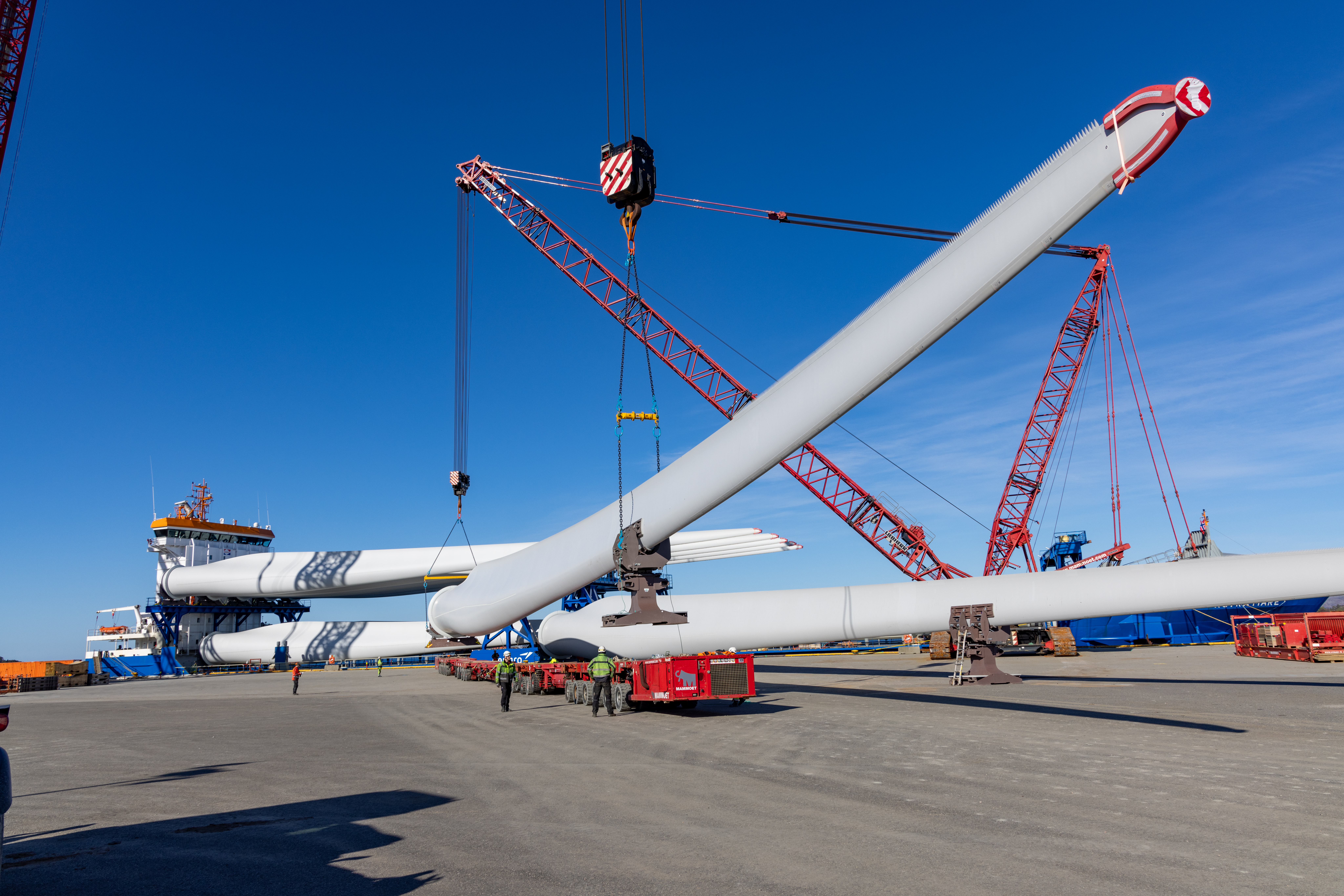 Installation methods are also being tested, along with new and larger turbines. The high point for a rotor tip is no less than 190 metres above sea level, with each of the three blades 81.5 metres long. Delivered by Siemens, the upgraded turbines have a capacity of 8.6 MW apiece. The turbines will be connected in a loop by a 2.5-kilometre power grid with a capacity of 66 kilovolts.